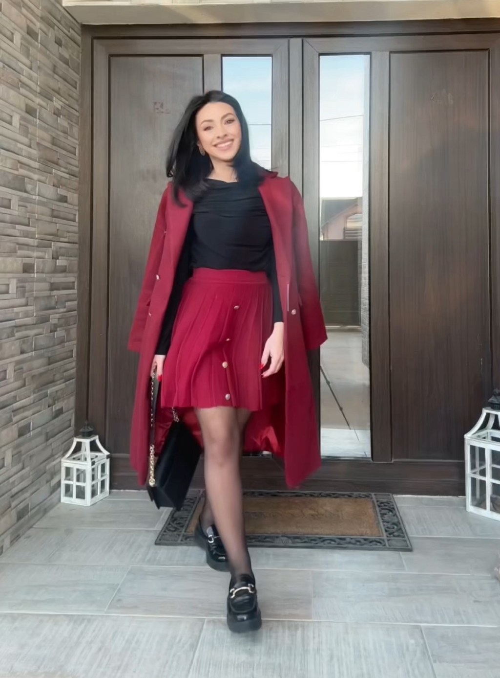 Port mărimea 34 la palton , S la setul din care face parte fusta , S/M la bluză. Le găsiți aici : https://ty.gl/ukkfunslysbig .